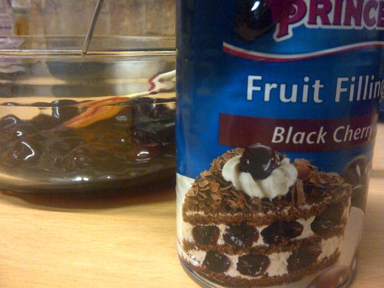 Now I shall explain the picture at the top of this post. Sometimes we like to make things from scratch, sometimes we like to buy ready made things, and sometimes we want to do something that falls between the two. That’s what this is. For a while I’ve had this idea of taking a can of cherry pie filling…