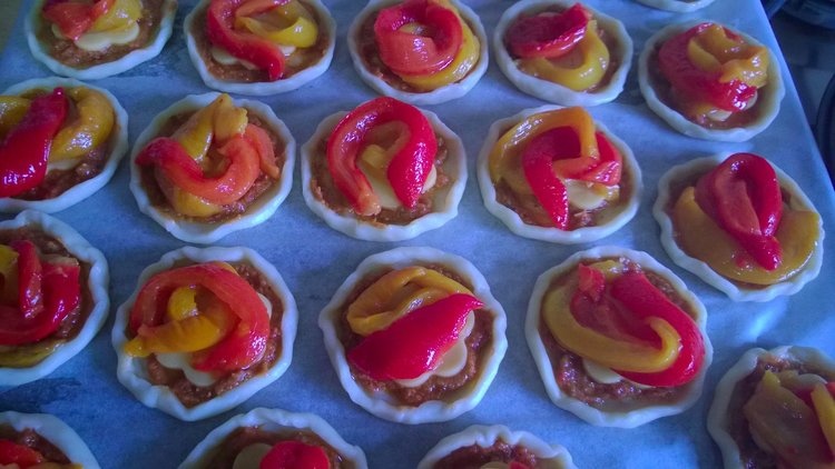 Finished roasted pepper tartlets